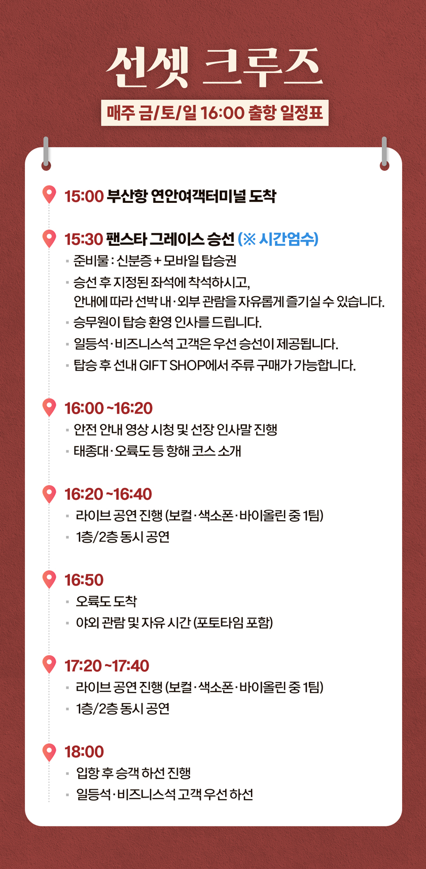 매주 금토일 오후 16시 출항